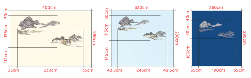 - Kích thước: Có 3 kích thước lựa chọn phù hợp cho các bức tường như sau: