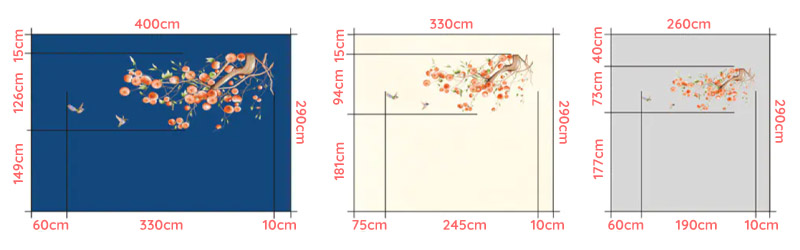 - Kích thước: Có 3 kích thước lựa chọn phù hợp cho các bức tường như sau: